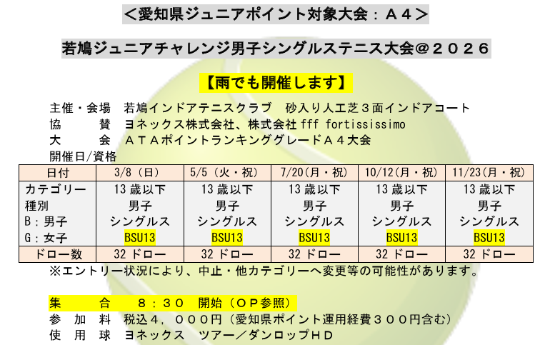 ①5/5(火・祝)13歳以下男子シングルス 日中帯(32ドロー) <=受付中