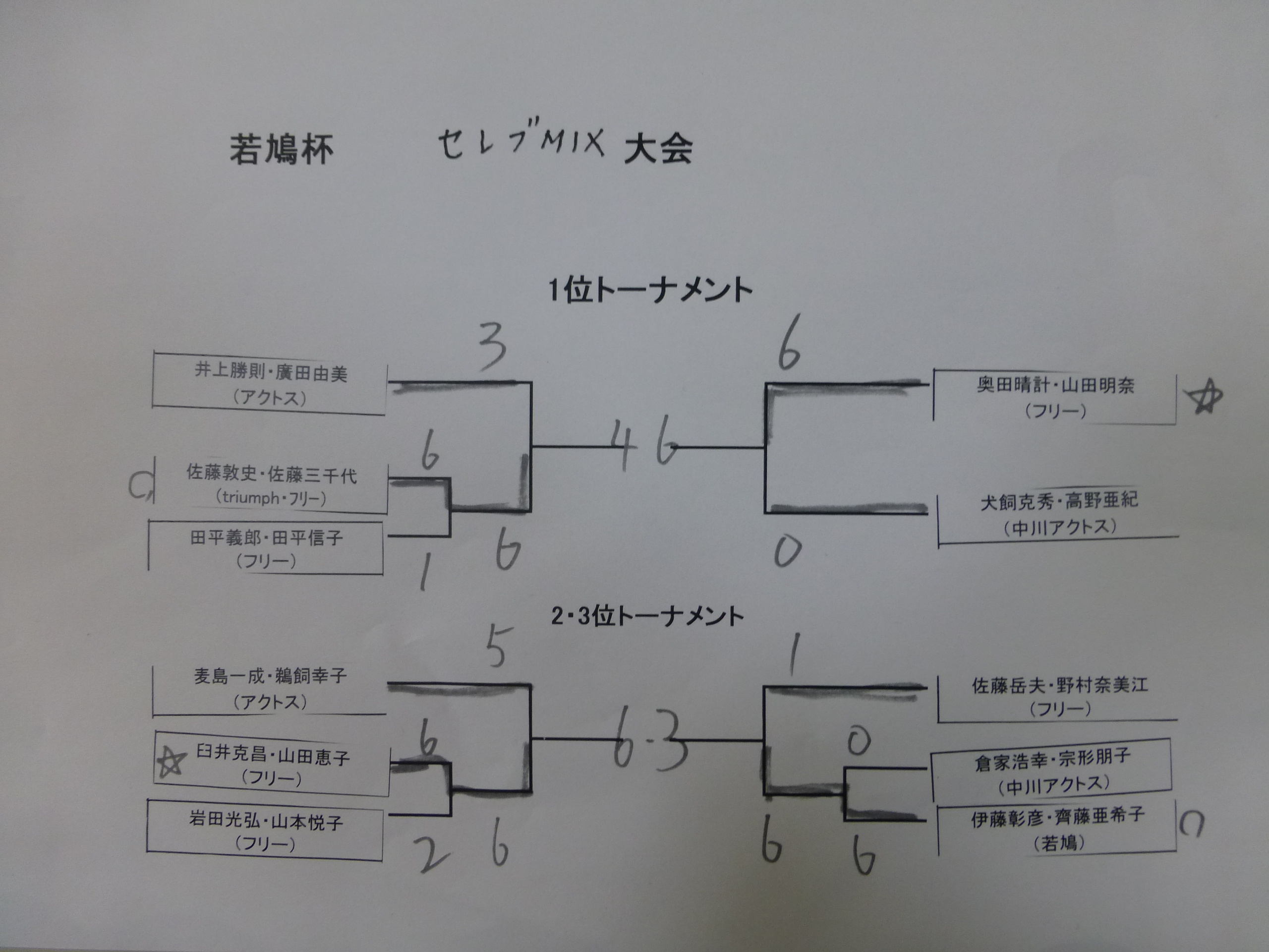 | 2・3位トーナメント | 準優勝 | 若鳩 | 伊藤彰彦・齊藤亜希子 |