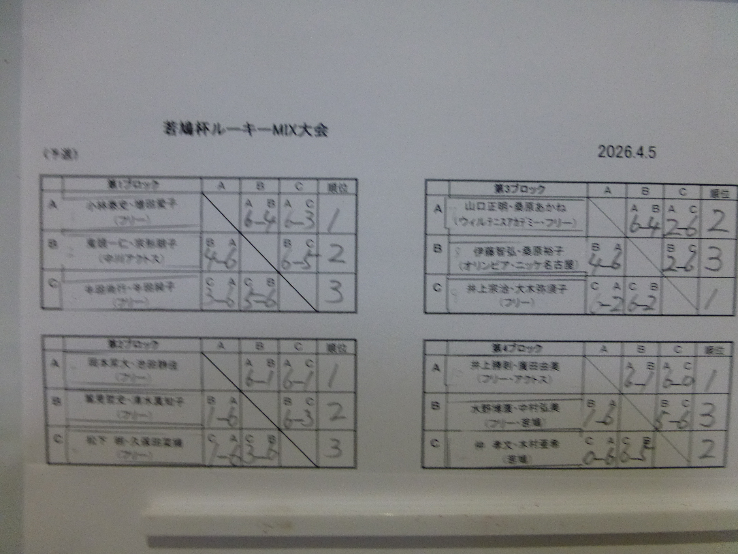 | 1位トーナメント | 優勝 | フリー | 小林泰史・増田愛子ペア |