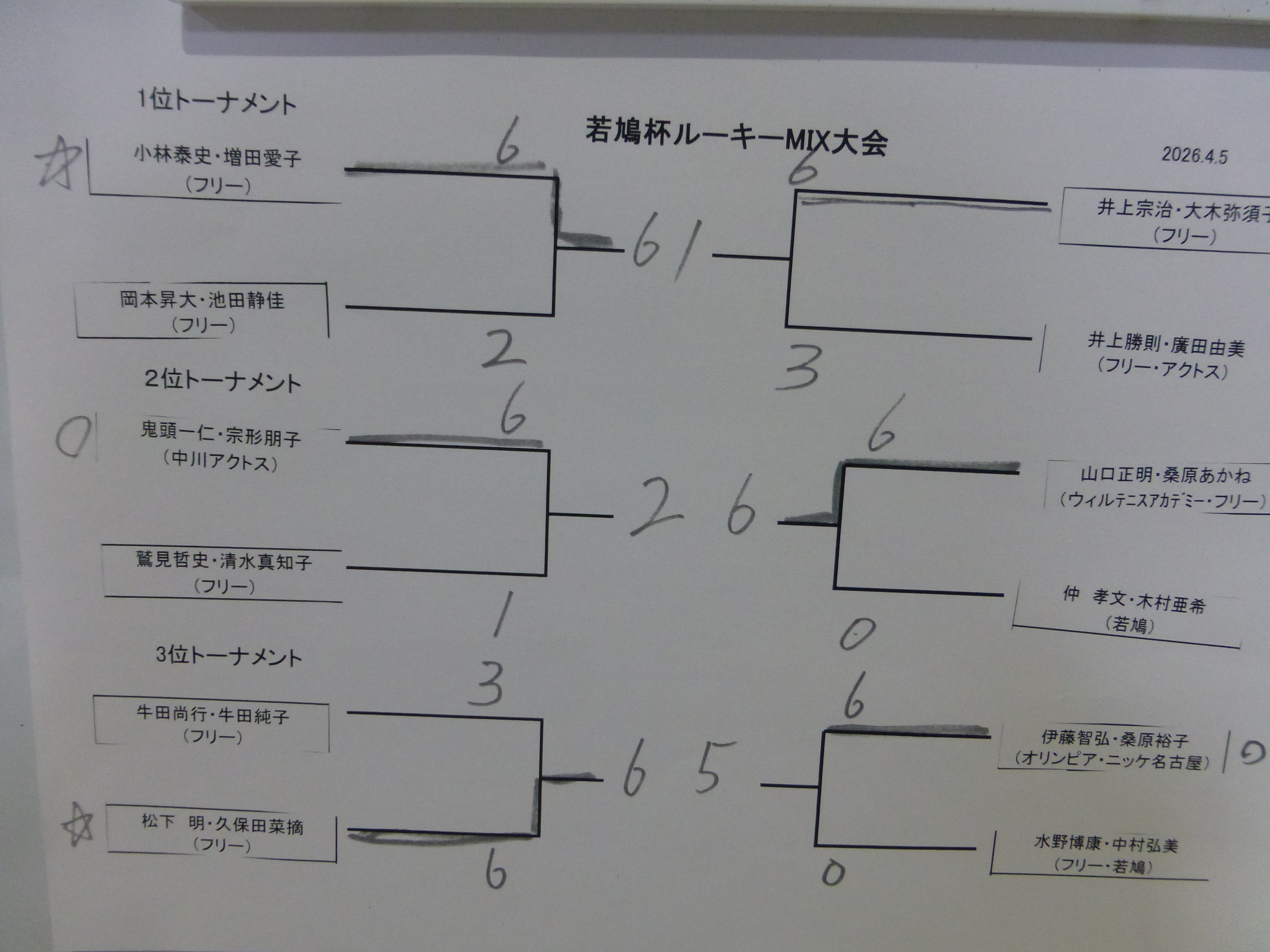 | 1位トーナメント | 準優勝 | フリー | 井上宗治・大木弥須子ペア |