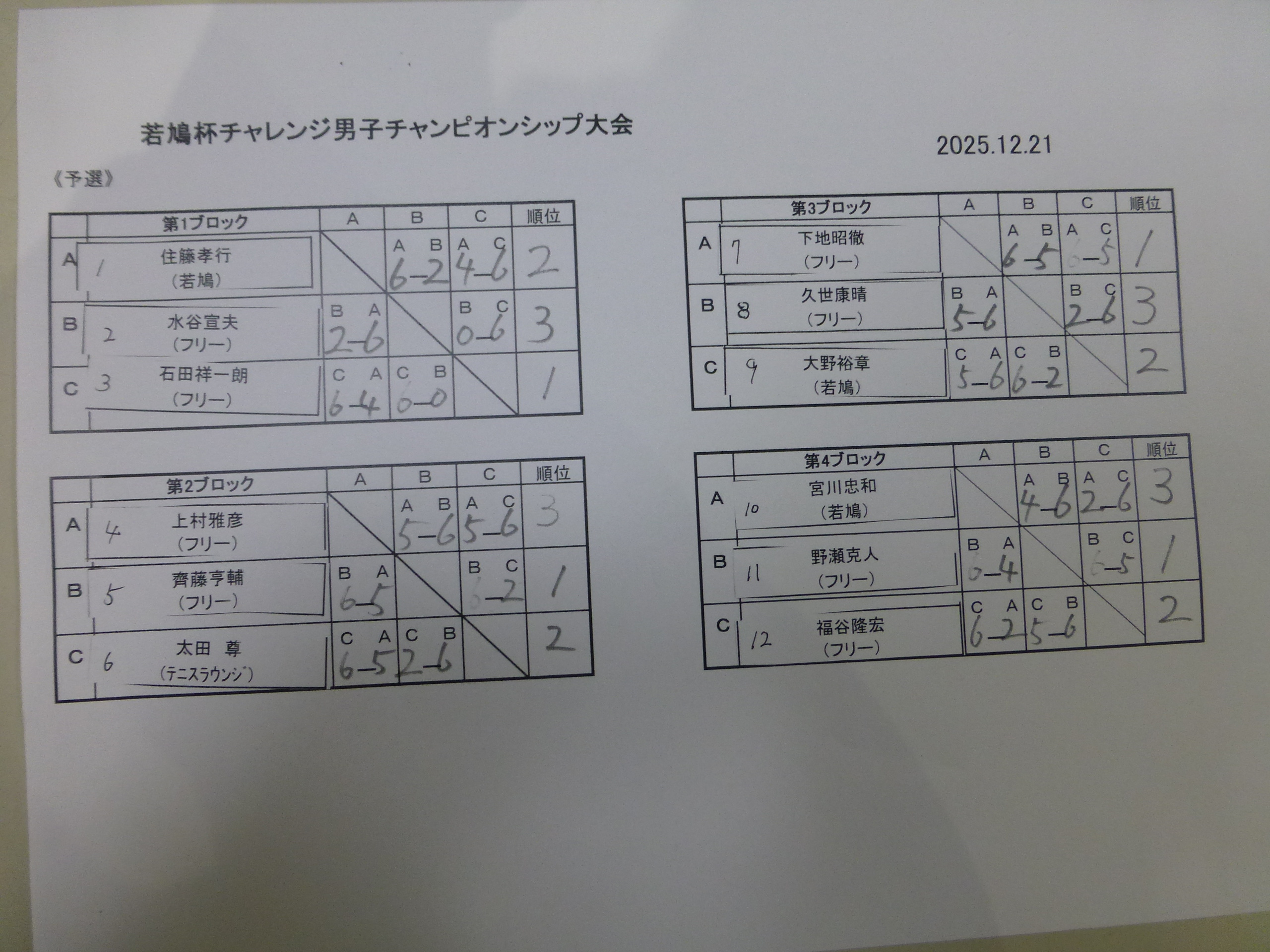 | 2位トーナメント | 優勝 | 大野裕章 | 若鳩 |