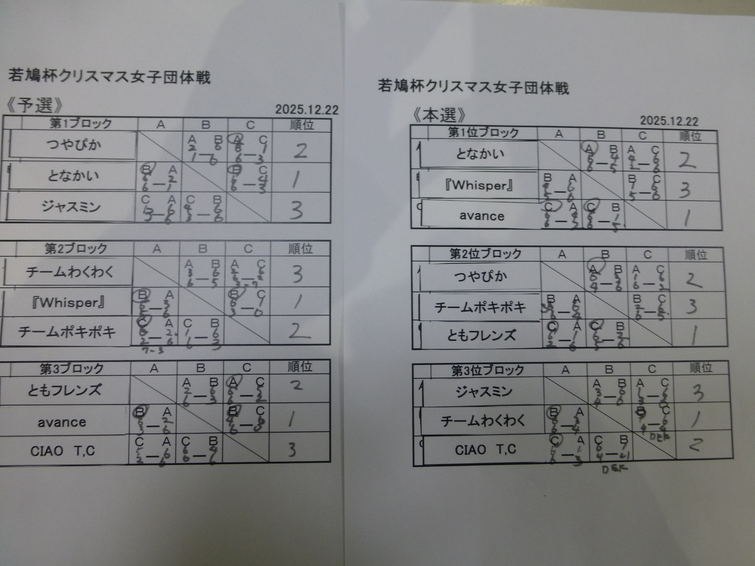 若鳩杯クリスマス女子ダブルス団体戦テニス大会