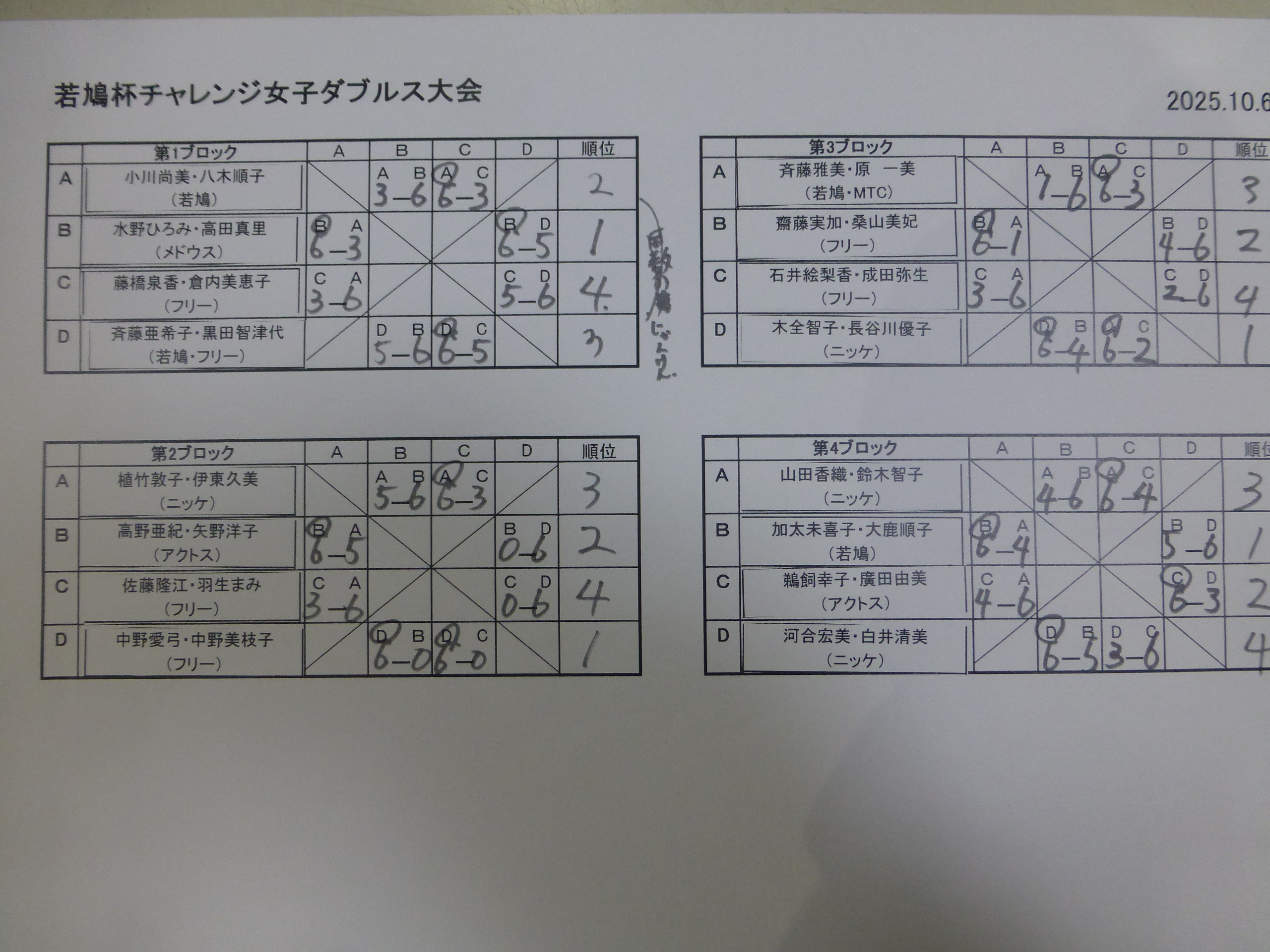 若鳩杯チャレンジ女子ダブルステニス大会