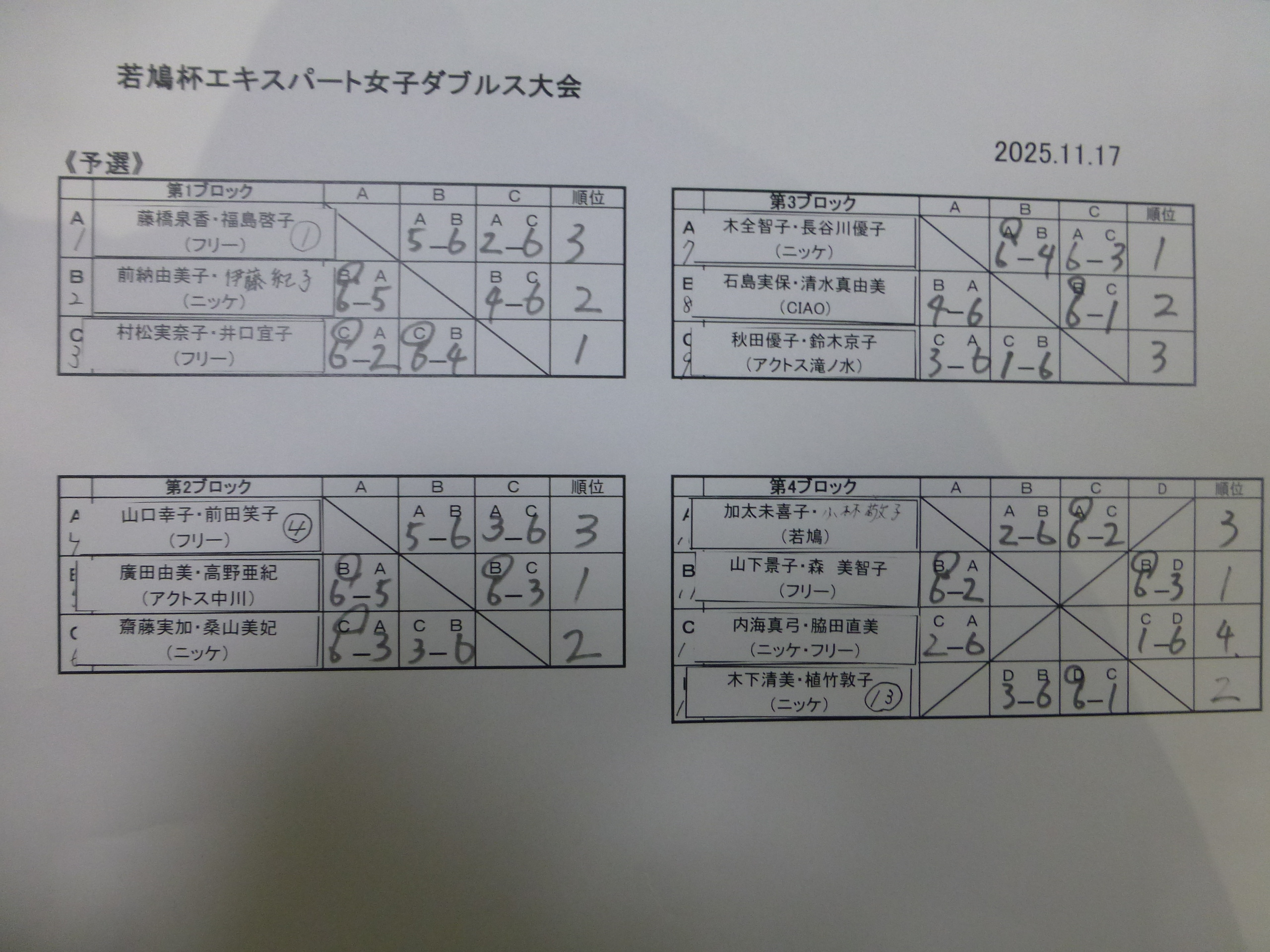 | 1位トーナメント | 優勝 | アクトス中川 | 廣田由美・高野亜紀 |