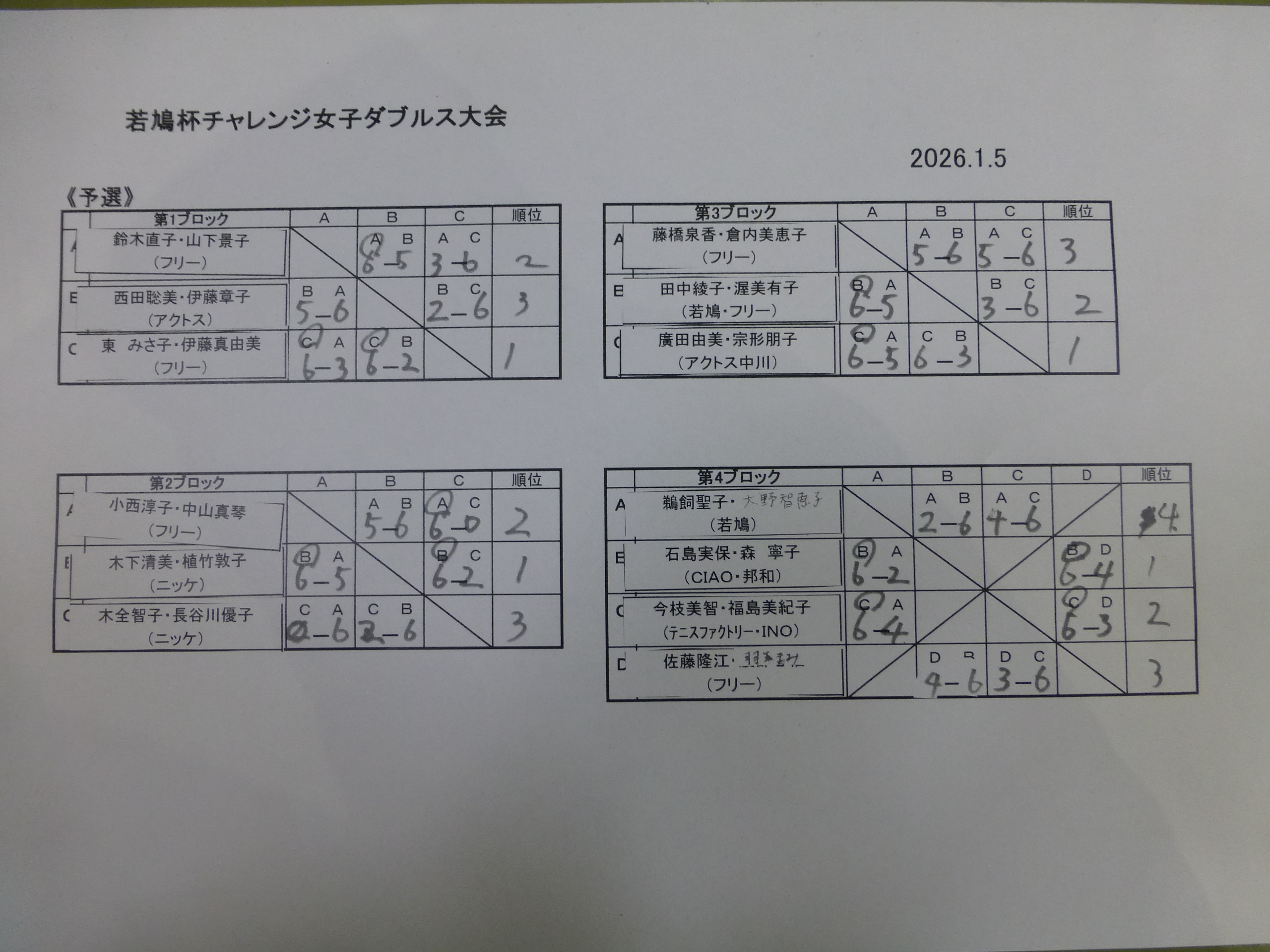 | 2位トーナメント | 優勝 | フリー | 鈴木直子・山下景子 |