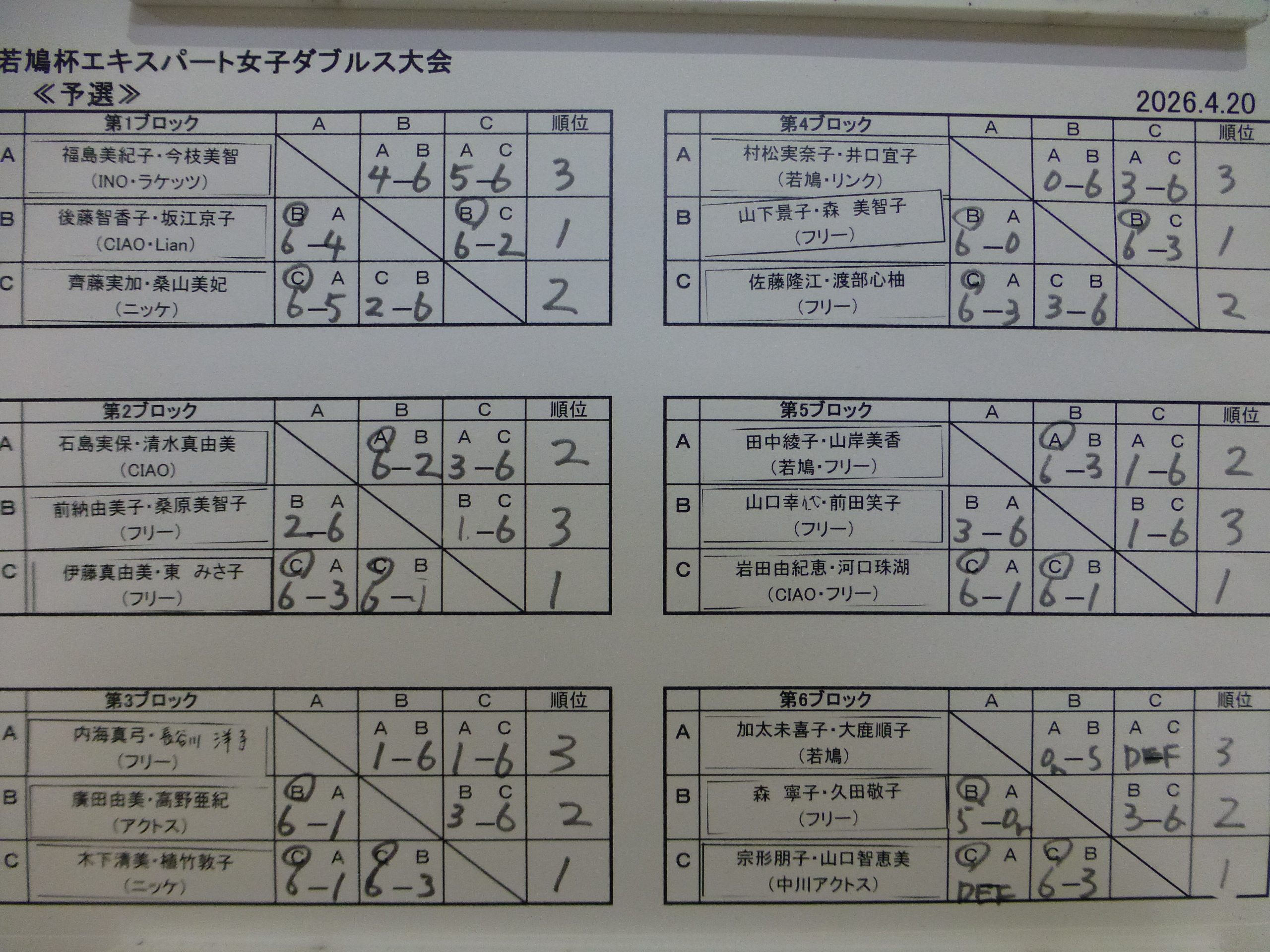 | 2位トーナメント | 優勝 | 若鳩・フリー | 田中綾子・山岸美香ペア |