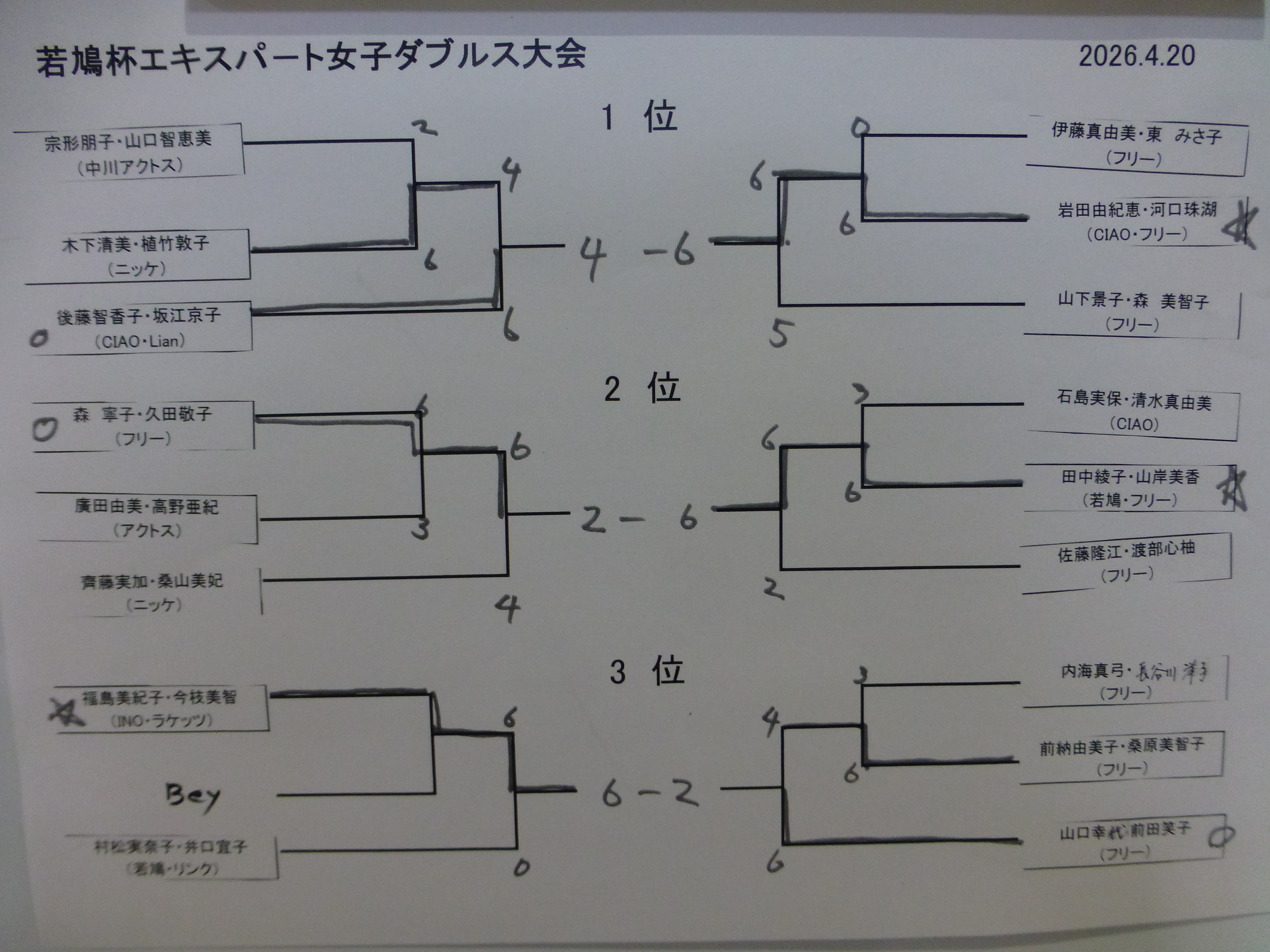 | 3位トーナメント | 優勝 | INO・ラケッツ | 福島 美紀子・今枝 美智ペア |